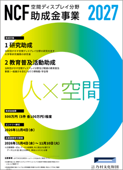 乃村文化財団の助成金制度は、空間ディスプレイ分野にかかわる大学の研究者、および同分野の教育普及活動を行う研究機関等への支援を通じて、ディスプレイによる社会貢献の可能性を広げることを目的としています。